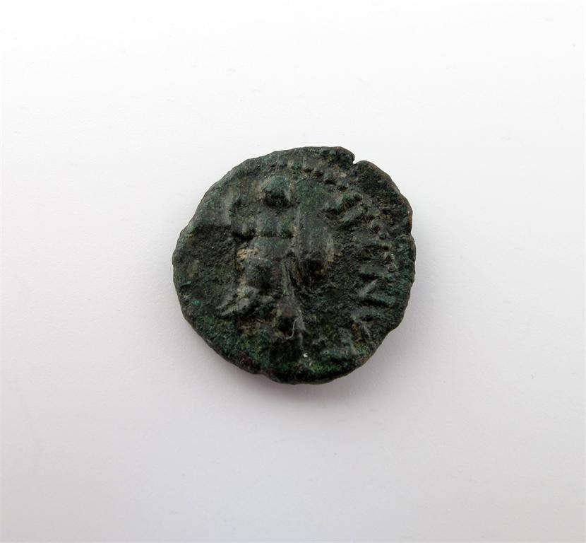 A Celtic Bronze Unit, Trinovantes & Catuvellauni, Tasciovanus, late 1st c. BC to early 1st c. AD, horseman rides to right, NOB below, rev standing soldier with shield and spear, [TASCIO]VANTIS, 2.4gms (de la Tour pl XLIV, Fv XII.3). Dark green patina, very fine.