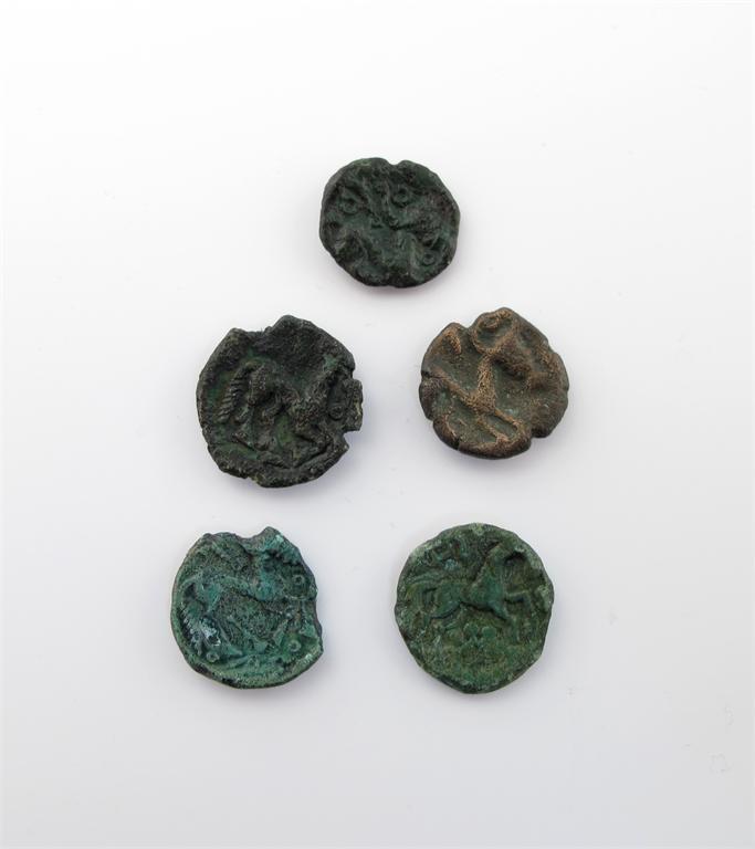 Uncertain Kentish Bronze Units (5) with crude stylized design (cf Van Arsdell 154-3). Fair and fine. (5)