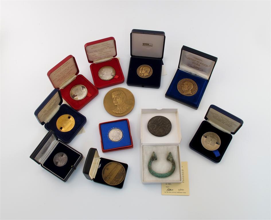 Commemorative Medallions, a mixed selection of modern pieces, including Jimmy Carter Inauguration, London Bridge, Lusitania, etc., many cased; and a sea-salvage Manila. Varied state. (lot)