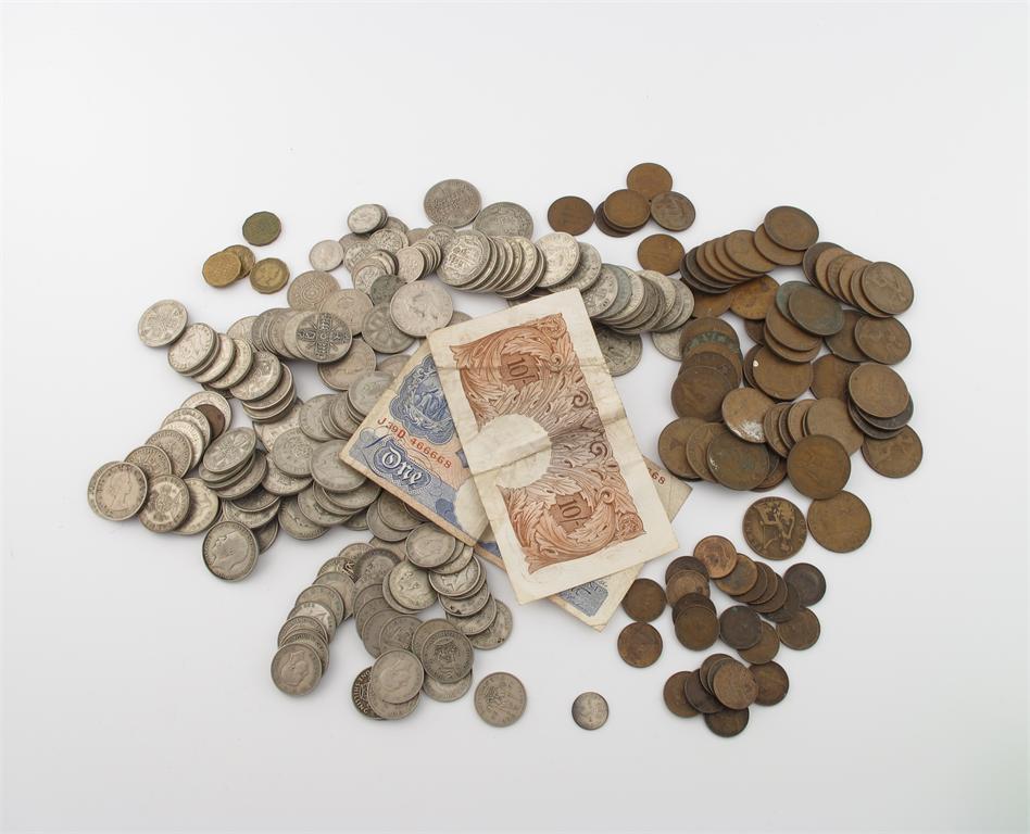 Miscellaneous modern British coins, including a small quantity of Pre-47 silver. Varied state.