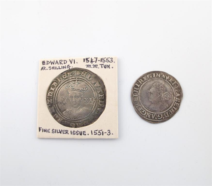 Edward VI, Shilling, mm tun (S 2482); and a Sixpence of Elizabeth I, 1561. Fair to fine. (2)