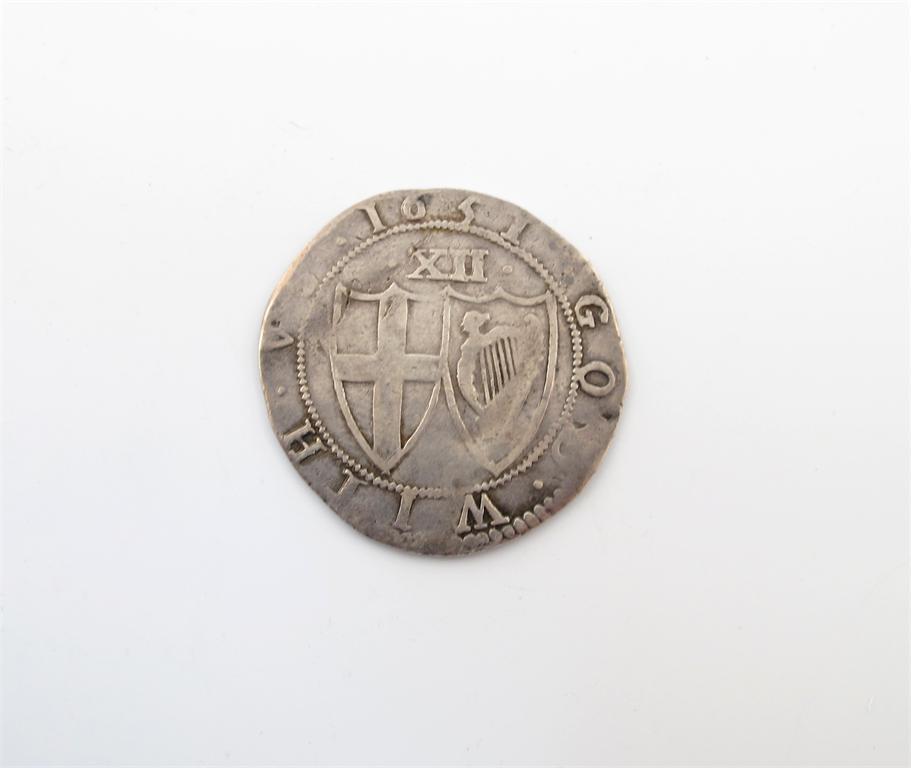 Commonwealth, Shilling, 1651, mm sun, single shield, no stops, rev double shields and value (ESC 983B; S 3217). About fine, slight crease-mark on obverse.