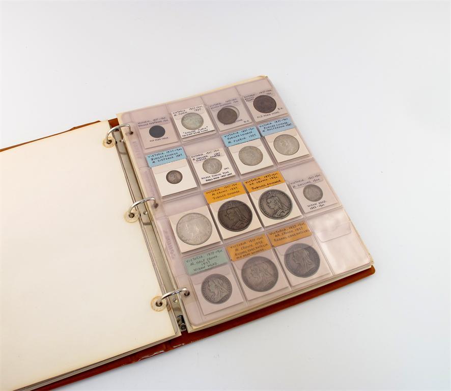 George III and later coins, in silver, copper and bronze, contained in a collector's album. Fair, fine and very fine and some better pieces. (lot)