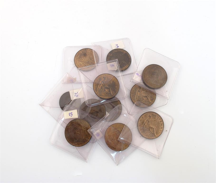 Victoria, bronze coinage (11), Young head Pennies (3) 1887, 1888, 1889; old head Pennies (6) and Halfpenny; Edward VII, Penny 1902. Most about extremely fine and many retaining some original colour. (11)