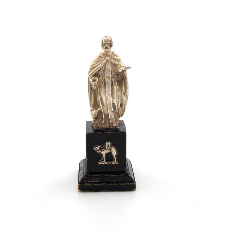 The Grocers' Company, a silver statue of a standing preacher, by John Carrington, London 1904, mounted on an ebonised plinth with the camel of the Grocers' Company, height 13.8cm.