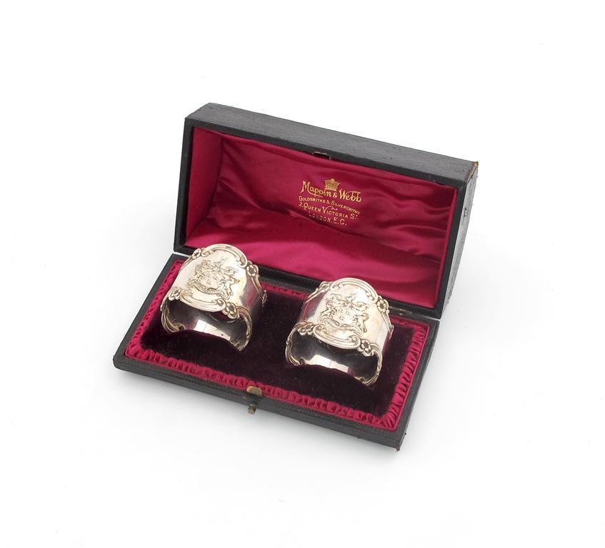 The Worshipful Company of Leathersellers, a cased pair of presentation silver napkin rings,