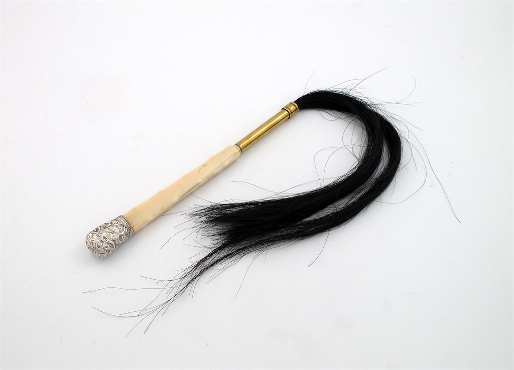 A late-Victorian silver mounted ivory handled fly whisk