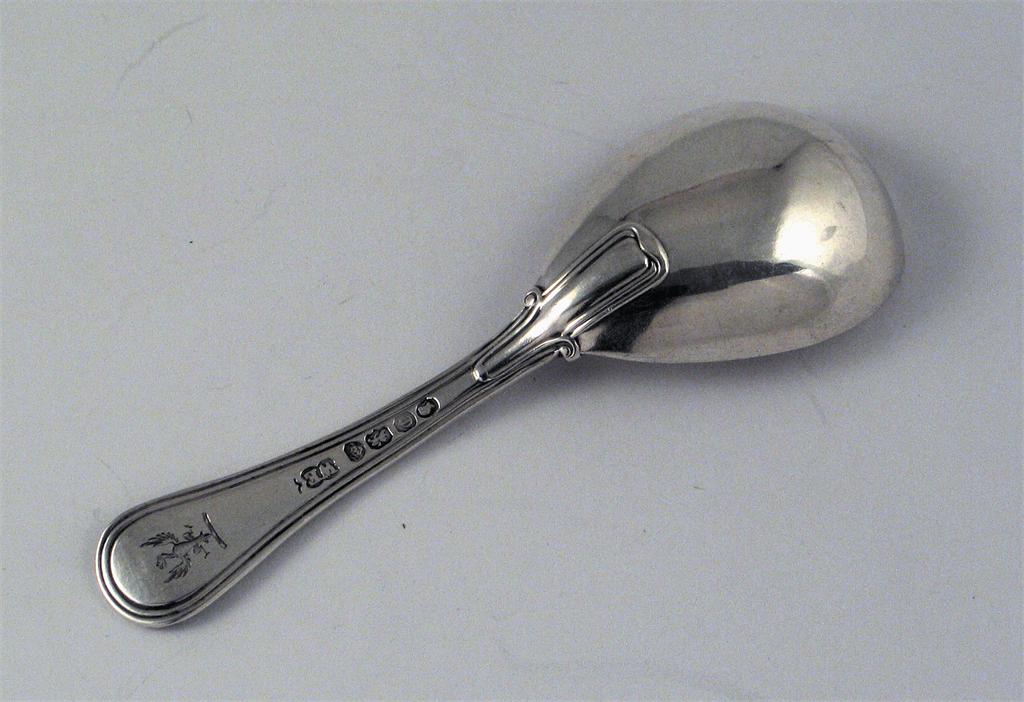 A rare Hanoverian Military thread pattern caddy spoon, crested, by William Eaton, London, 1838.