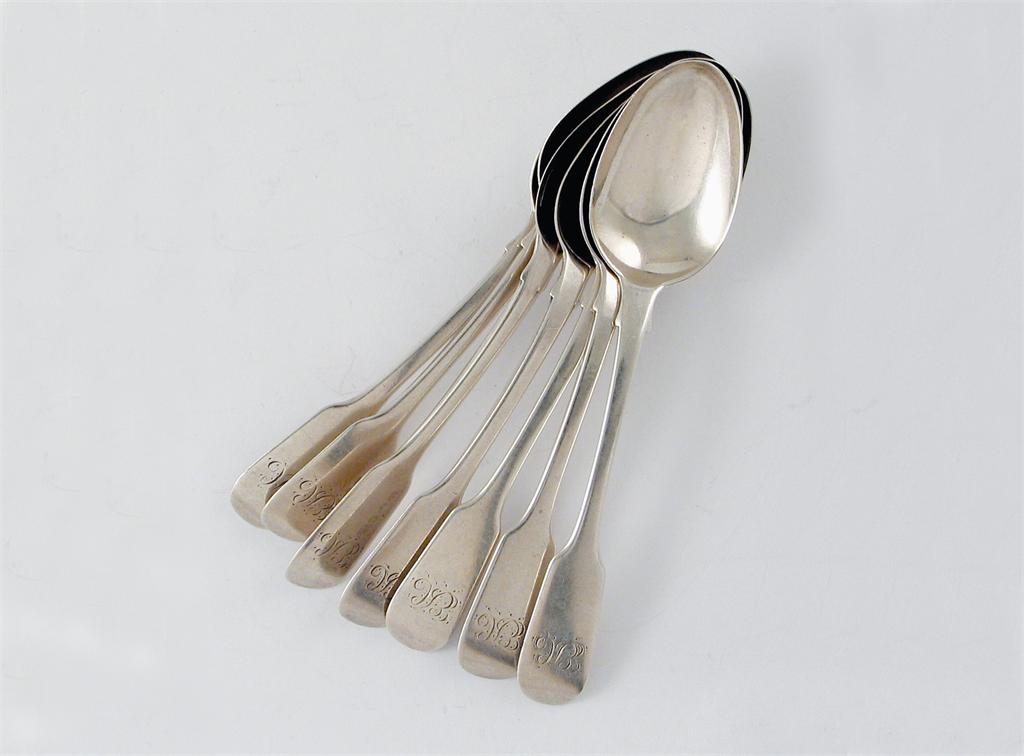 A set seven George IV provincial fiddle teaspoons, initialled, by Barber, Cattles and North, York, 1826, 3oz.
