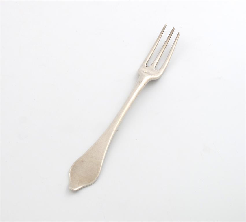 A Queen Anne Scottish silver Three-pronged Dognose table fork,