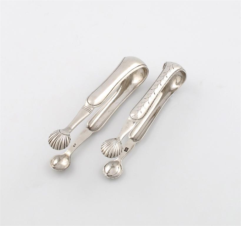 shell bowls, the terminal scratch initialled, plus another similar pair with engraved decoration, indistinct maker's mark, approx. weight 4oz. (2)
