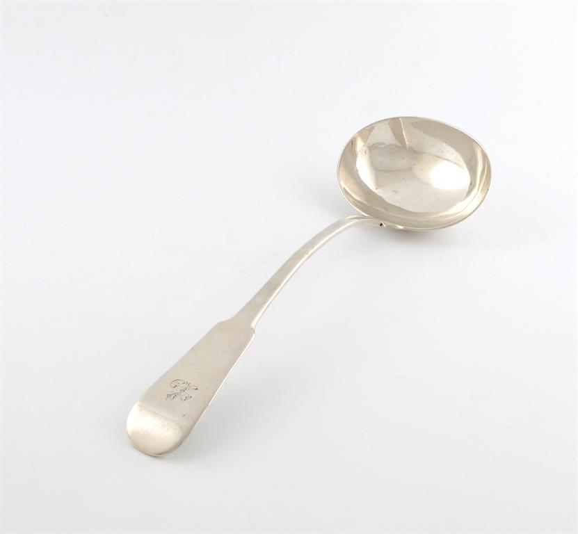 A William IV Scottish silver Fiddle pattern soup ladle,