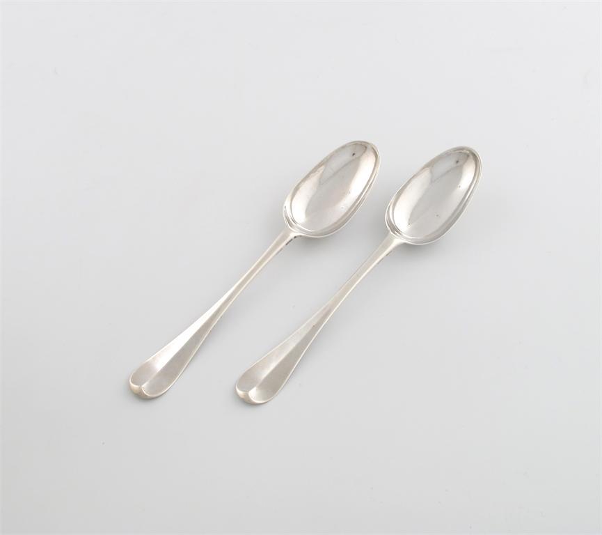 A pair of George II provincial silver Hanoverian-rat-tail pattern tablespoons,
