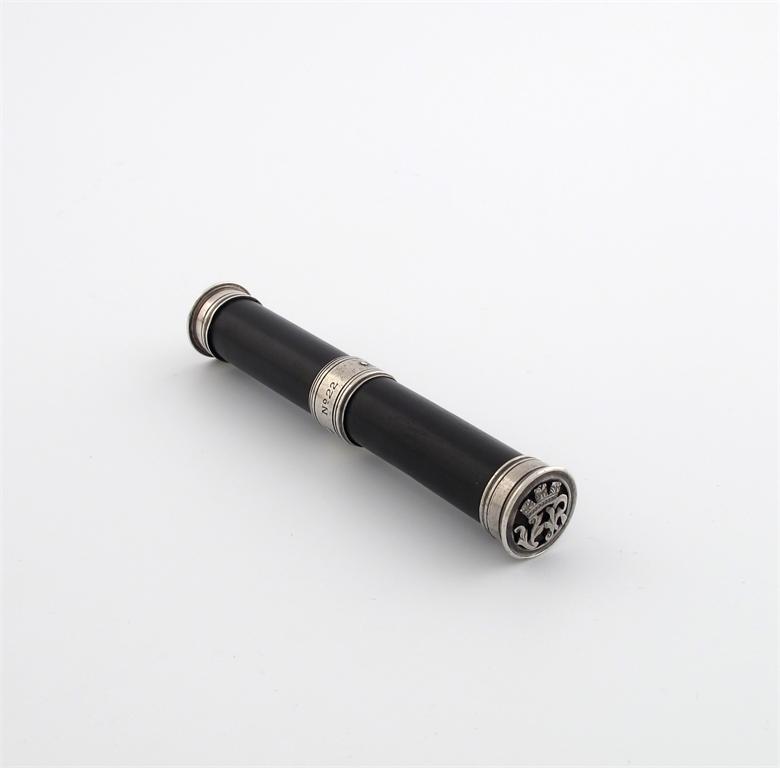 A Victorian Scottish silver mounted ebony tipstaff