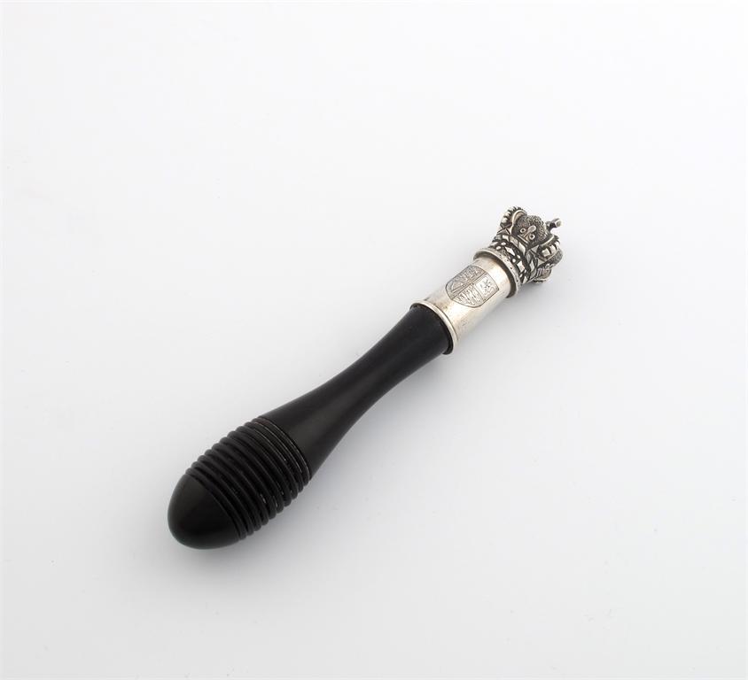 with a turned ribbed baluster handle, the mount with a crown finial and engraved with the arms of Edinburgh and The Royal shield, length 16cm.