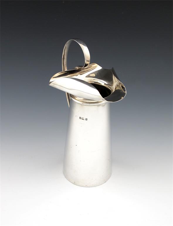 An Edwardian silver water jug, maker's mark worn, London 1905, tapering circular form, scroll handle, flared rim, height 25.5cm, approx. weight 18oz.