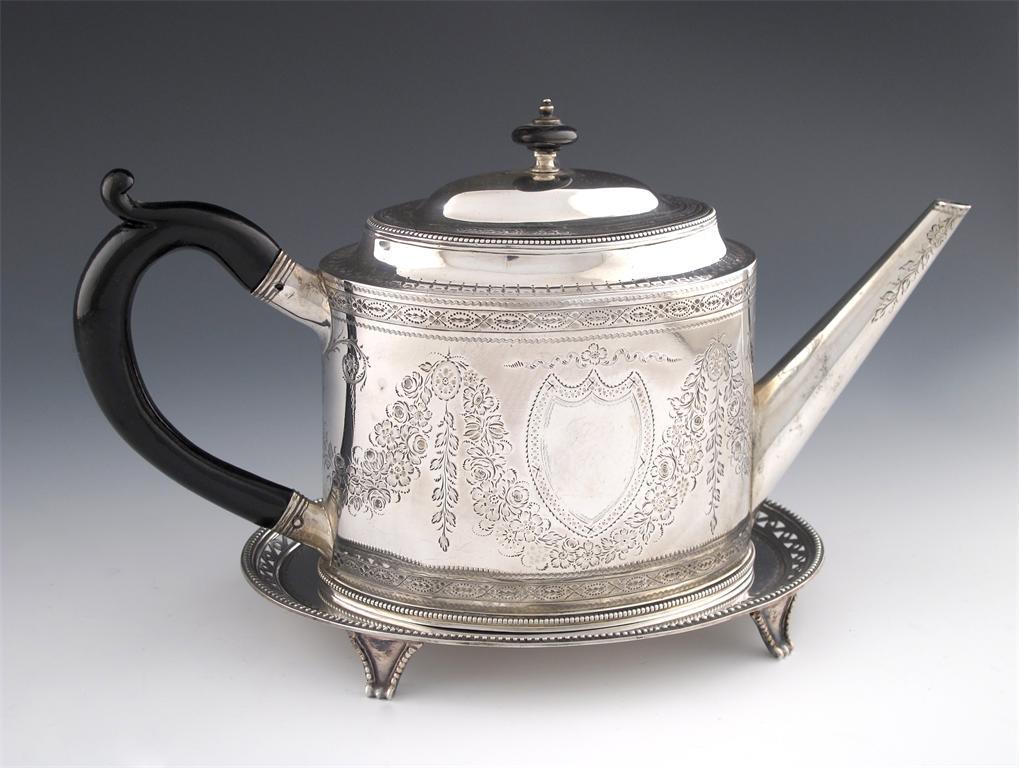 A George III silver teapot and associated teapot stand