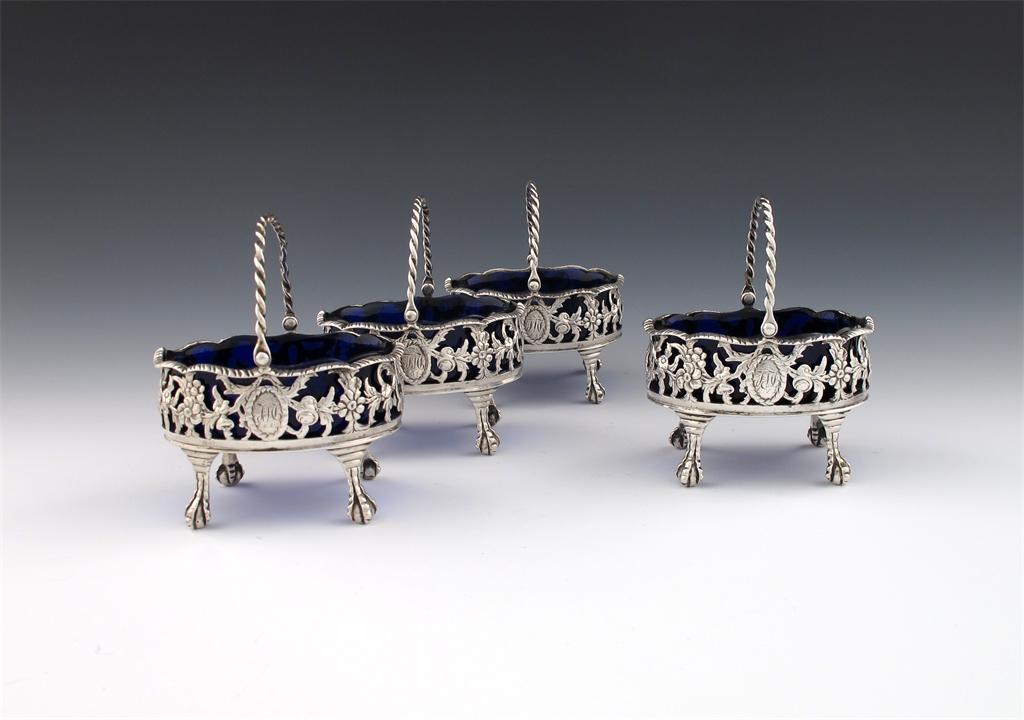 A set of four George III silver salt cellars,