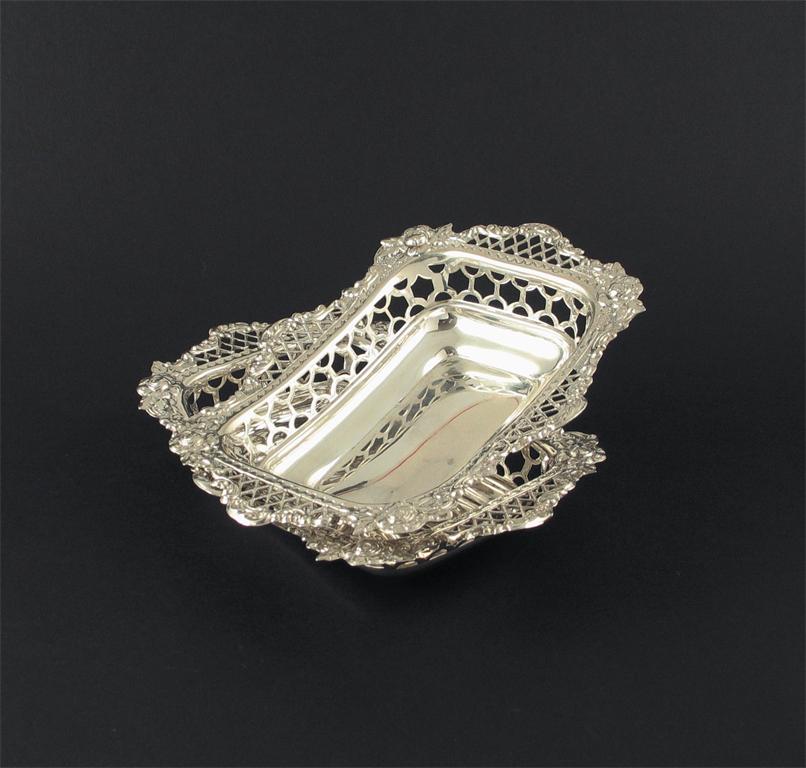 A pair of Victorian bon bon dishes, of shaped oblong outline by William Comyns, London 1897, 5.5in (14cm)wide, 4oz.