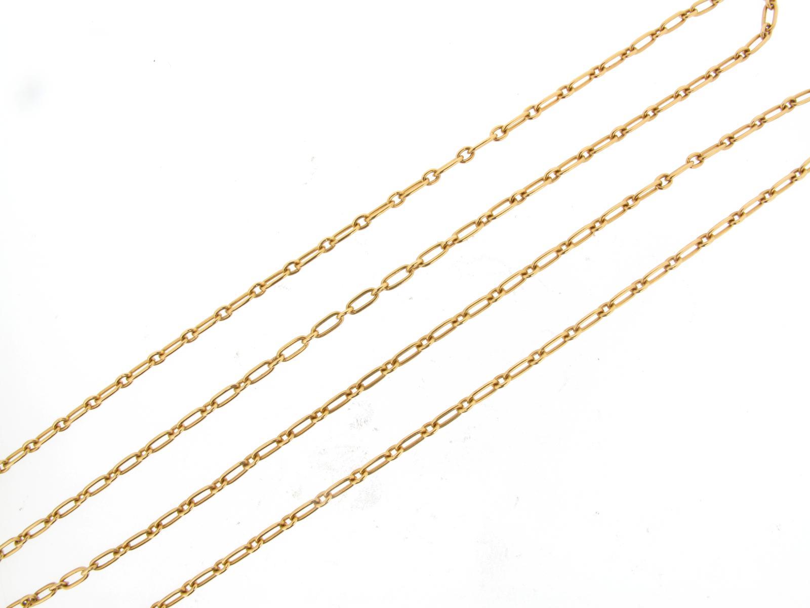 Cartier. A gold long chain necklace with spectacle mounts. 67cm. 11g in total.