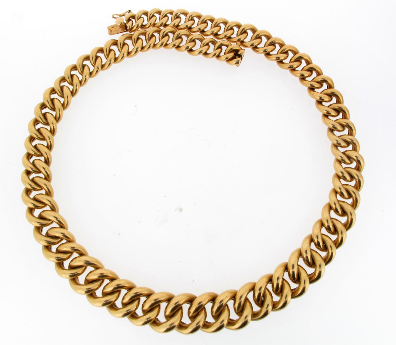 Cartier. An 18ct yellow gold graduated curb link necklace, signed Cartier Paris with inventory number 02265 and French control marks. 45cm. 77g.