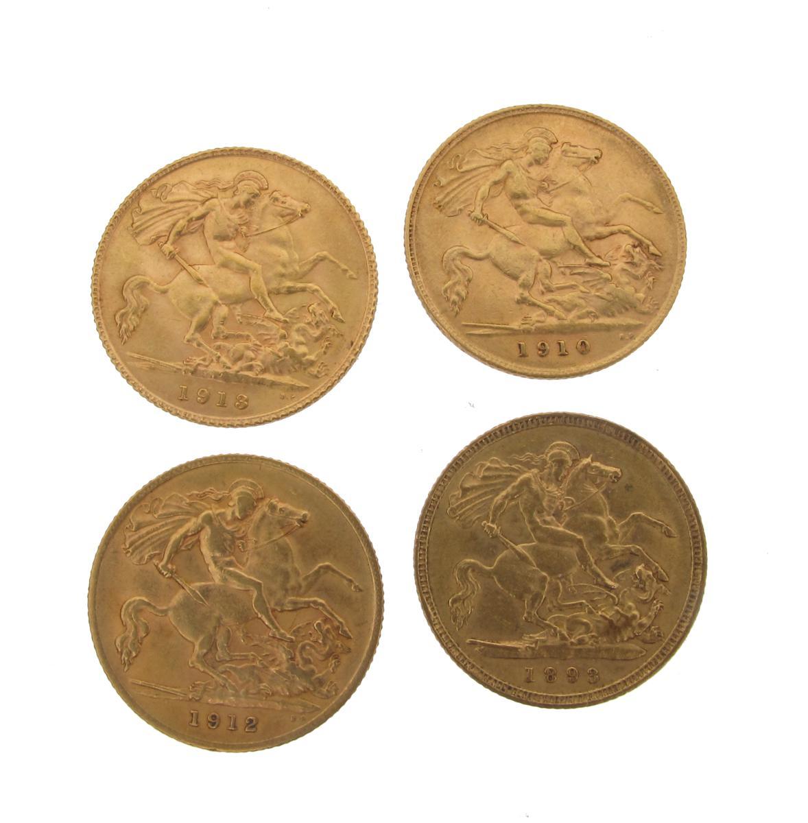 Four half sovereigns. 1893, 1910, 1912 and 1913.