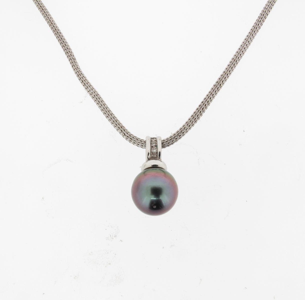 A cultured pearl mounted white gold pendant