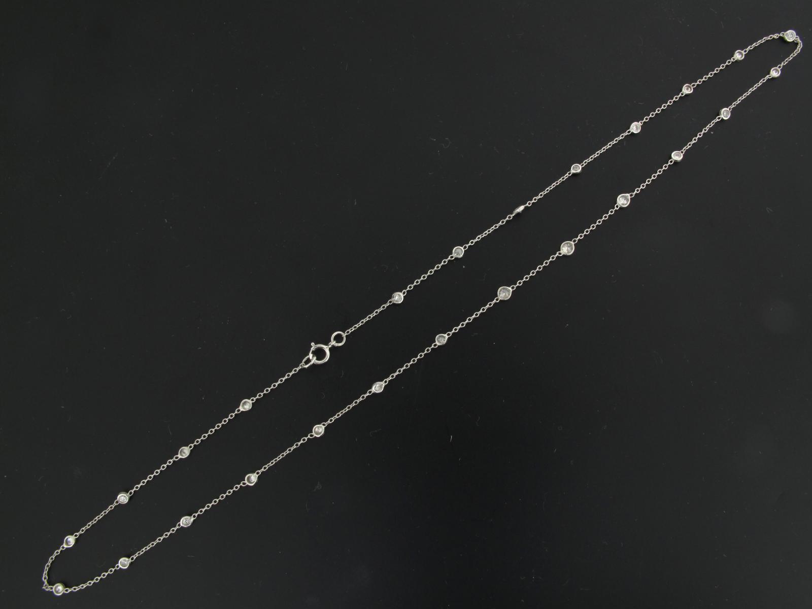 A diamond set white gold fine link neck chain. 42cm.