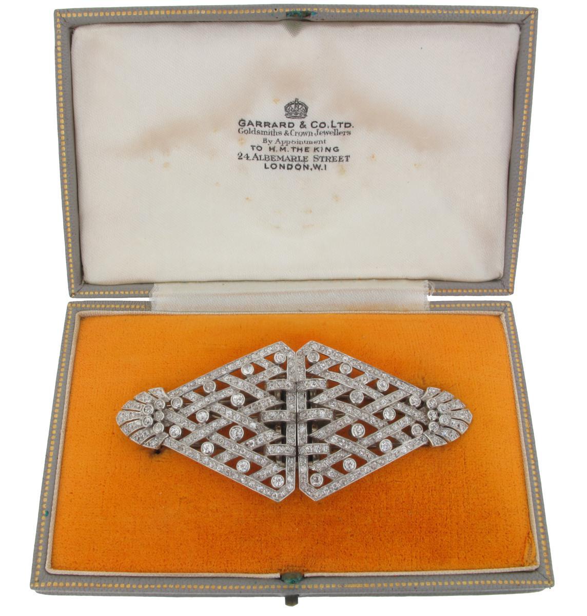 Garrard. A diamond set platinum double clip brooch