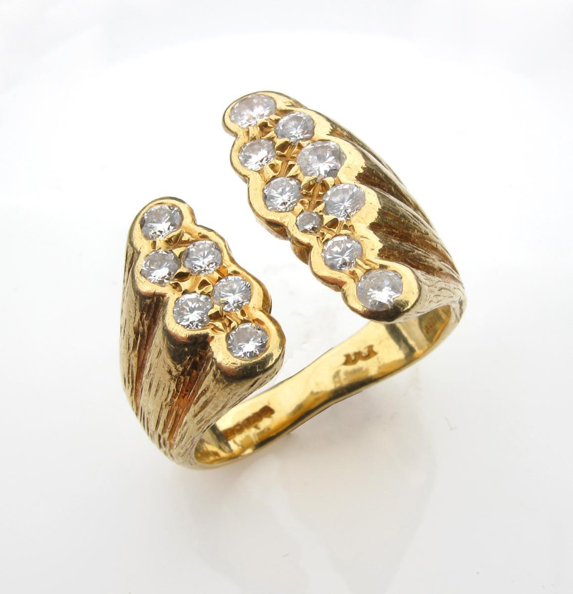 Andrew Grima, an 18ct yellow gold fluted ring. The open mount with diamond set terminals. Signed and with London marks for 1995.