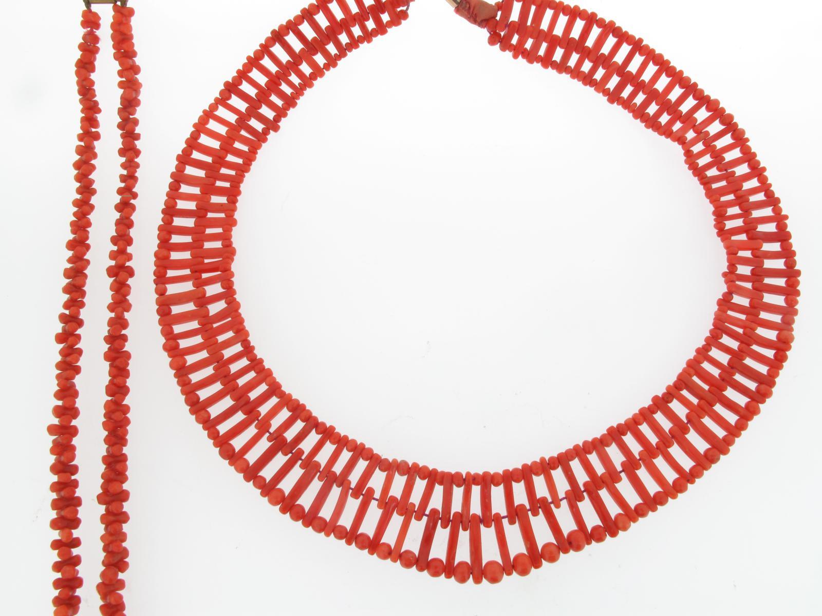 A 19th Century coral articulated and graduated necklace. And a smaller coral necklace.