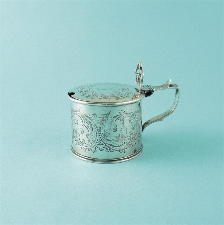 A Victorian engraved drum mustard pot