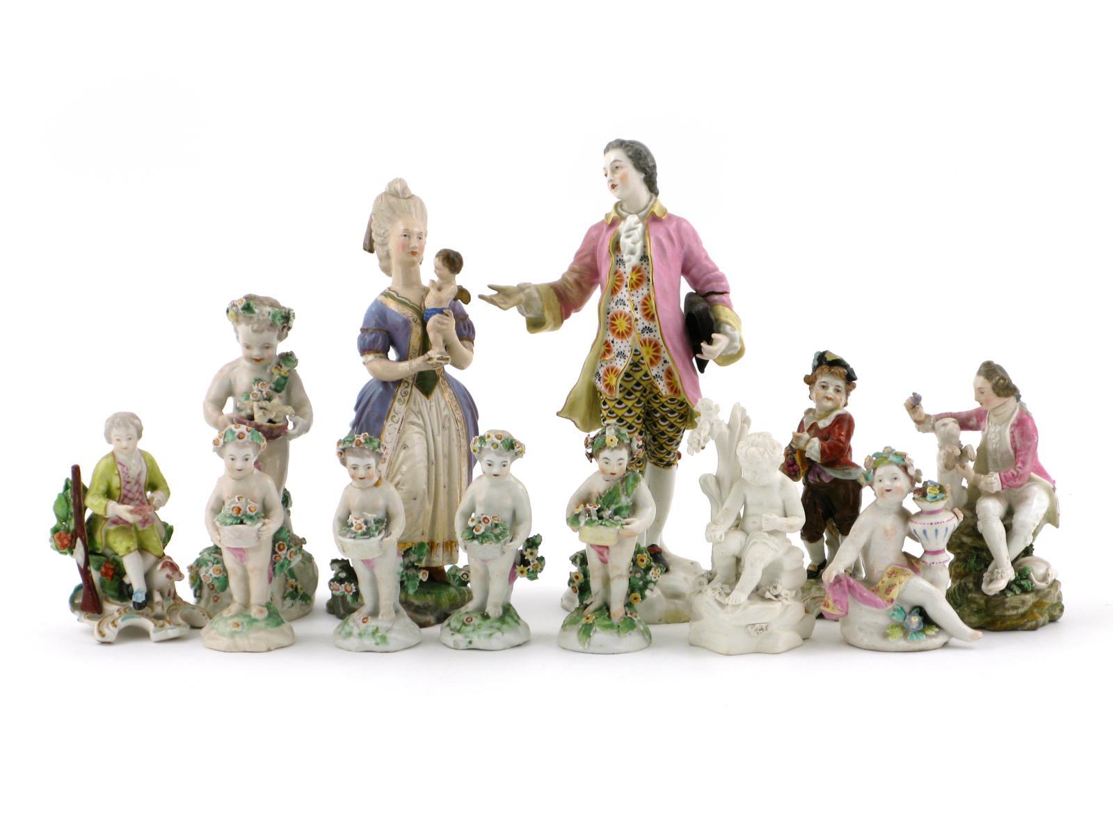 Twelve porcelain figures 18th century and later