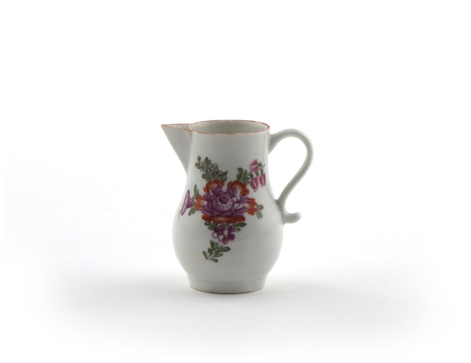 A Lowestoft sparrow beak jug c.1775, well painted with a large flower spray, the reverse with three smaller sprigs, 7.5cm.