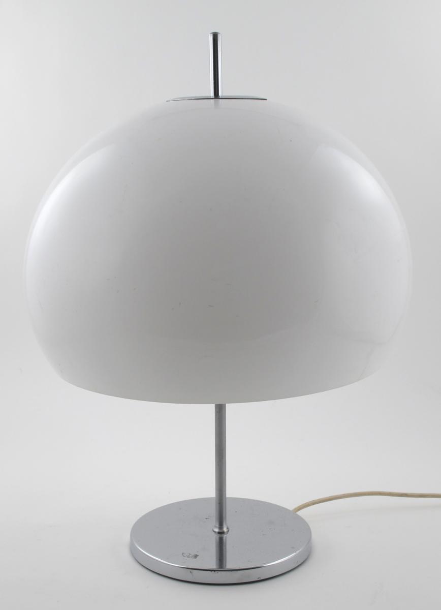 A Harvey Guzzini chrome table lamp, with white plastic shade unsigned 57cm. high