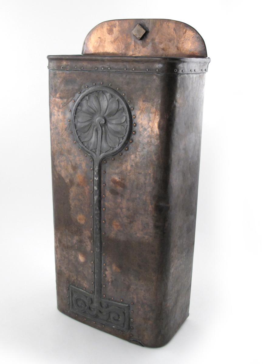 An Arts and Crafts patinated copper and pewter umbrella stand