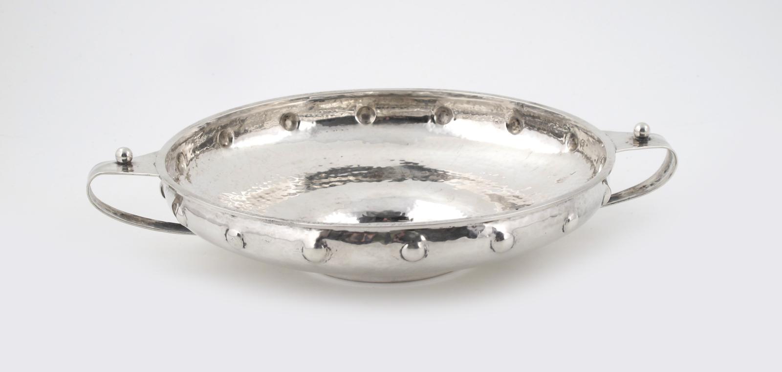 An A E Jones Arts and Crafts silver twin-handled bowl