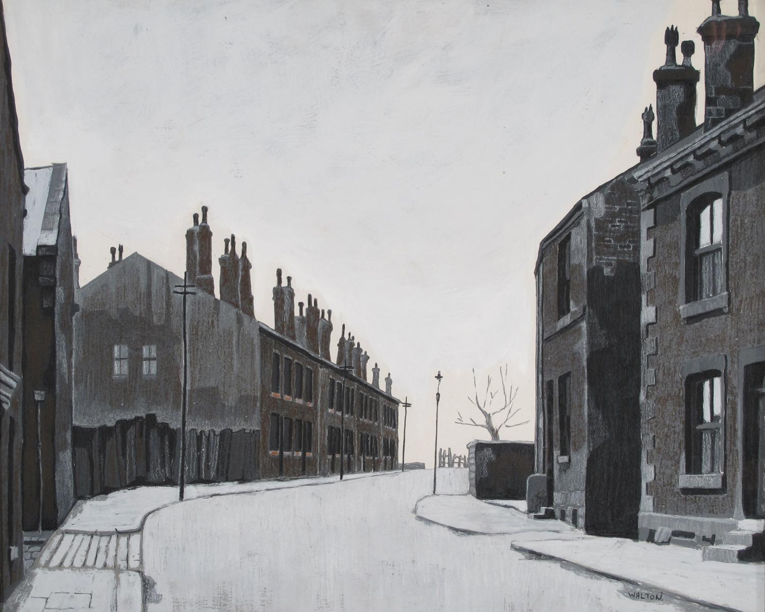 ‡Walton (20th Century) Winter street scene Signed Gouache and chalk 50 x 62.5cm; 19¾ x 24½in