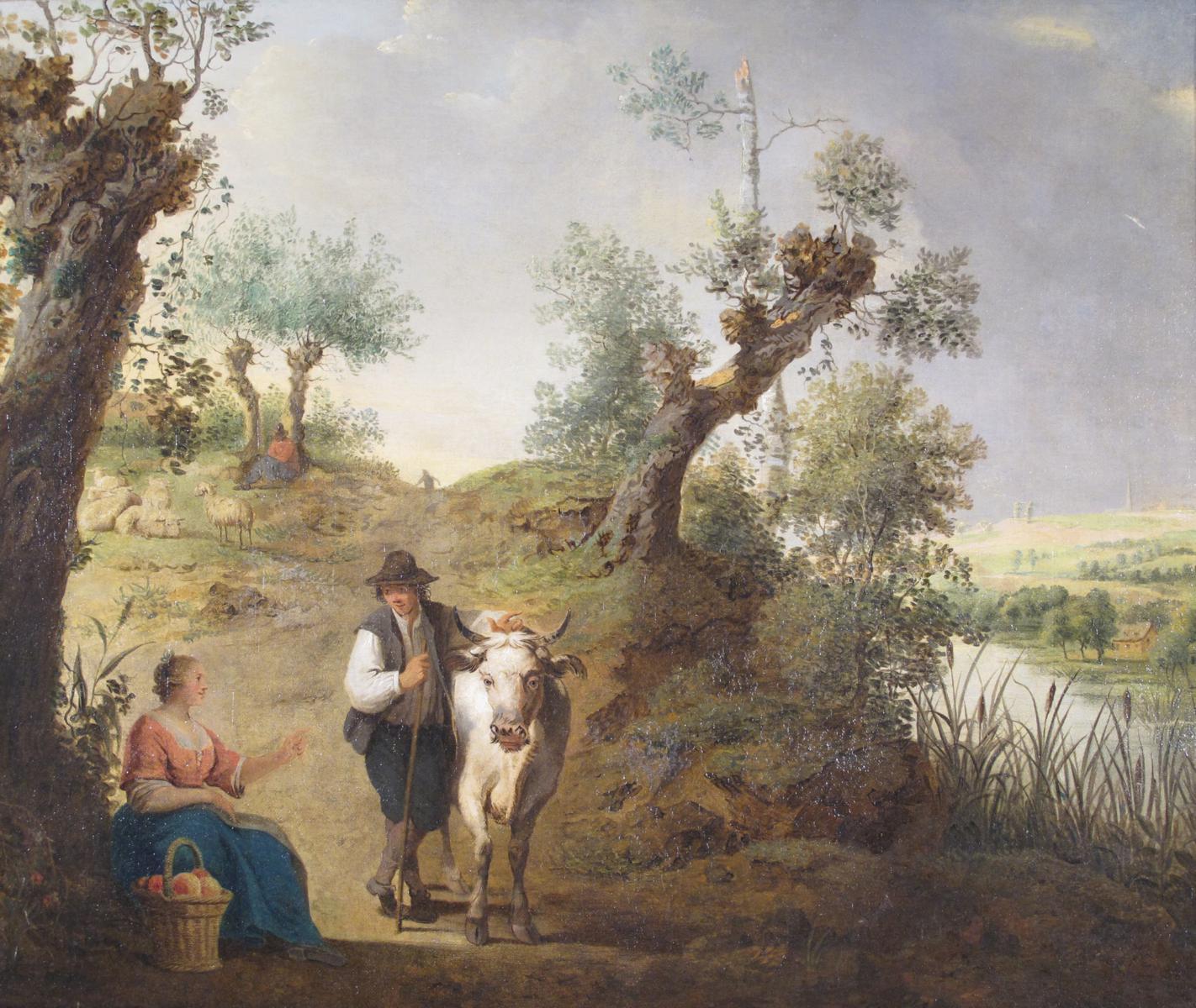 Circle of George Morland Traveller and fruitseller on a country road Oil on canvas 63.5 x 76cm;...