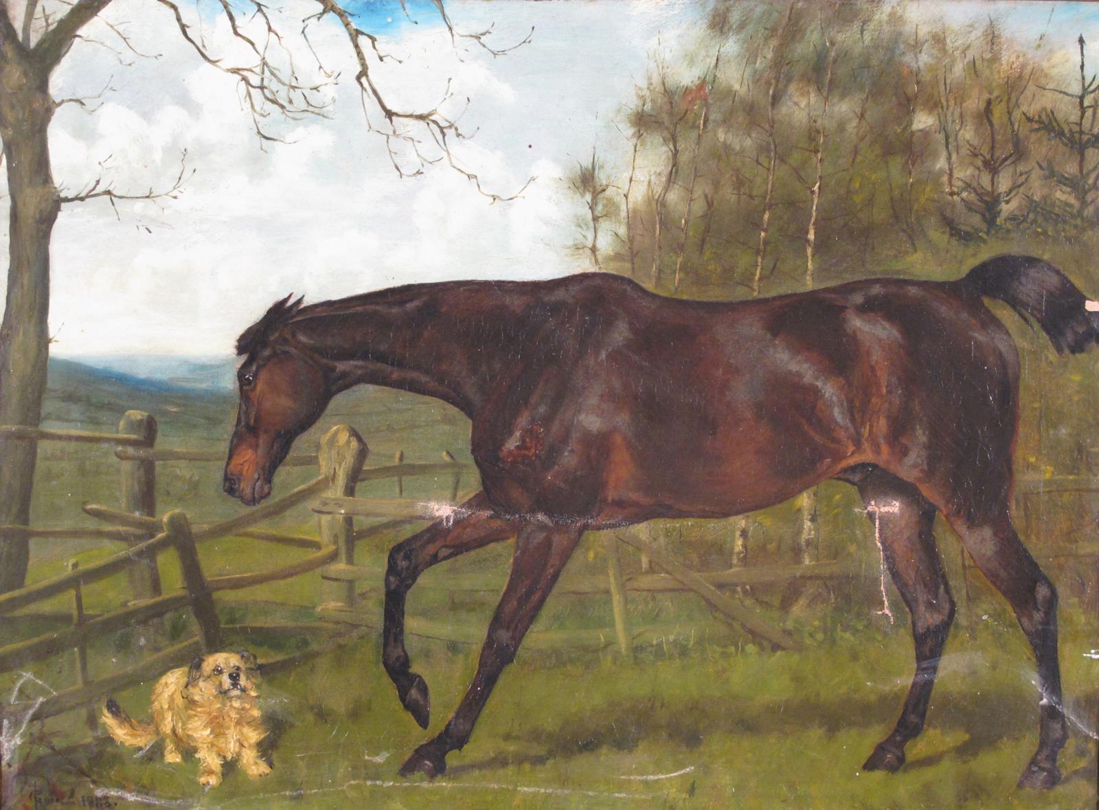 George Paice (1854-1925) A hunter with companion Signed and dated 1882 Oil on canvas 50.5 x...
