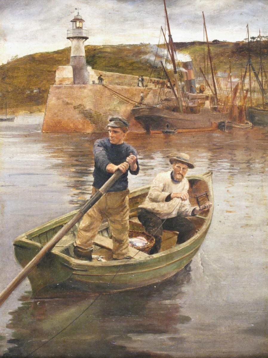 Follower of Stanhope Alexander Forbes R.A. Fishermen in Newlyn Harbour Oil on board 40.5 x 31cm;16 x 12in