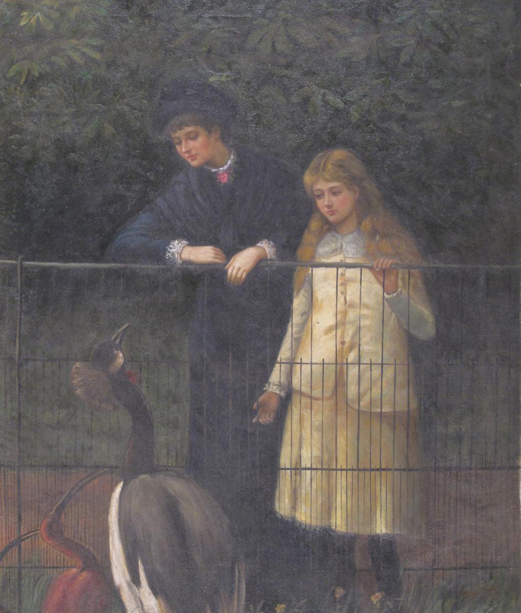 T. Boniface (Late 19th Century) A mother and daughter at the Zoo Signed Oil on canvas 67 x 55cm; 26½ x 21½in
