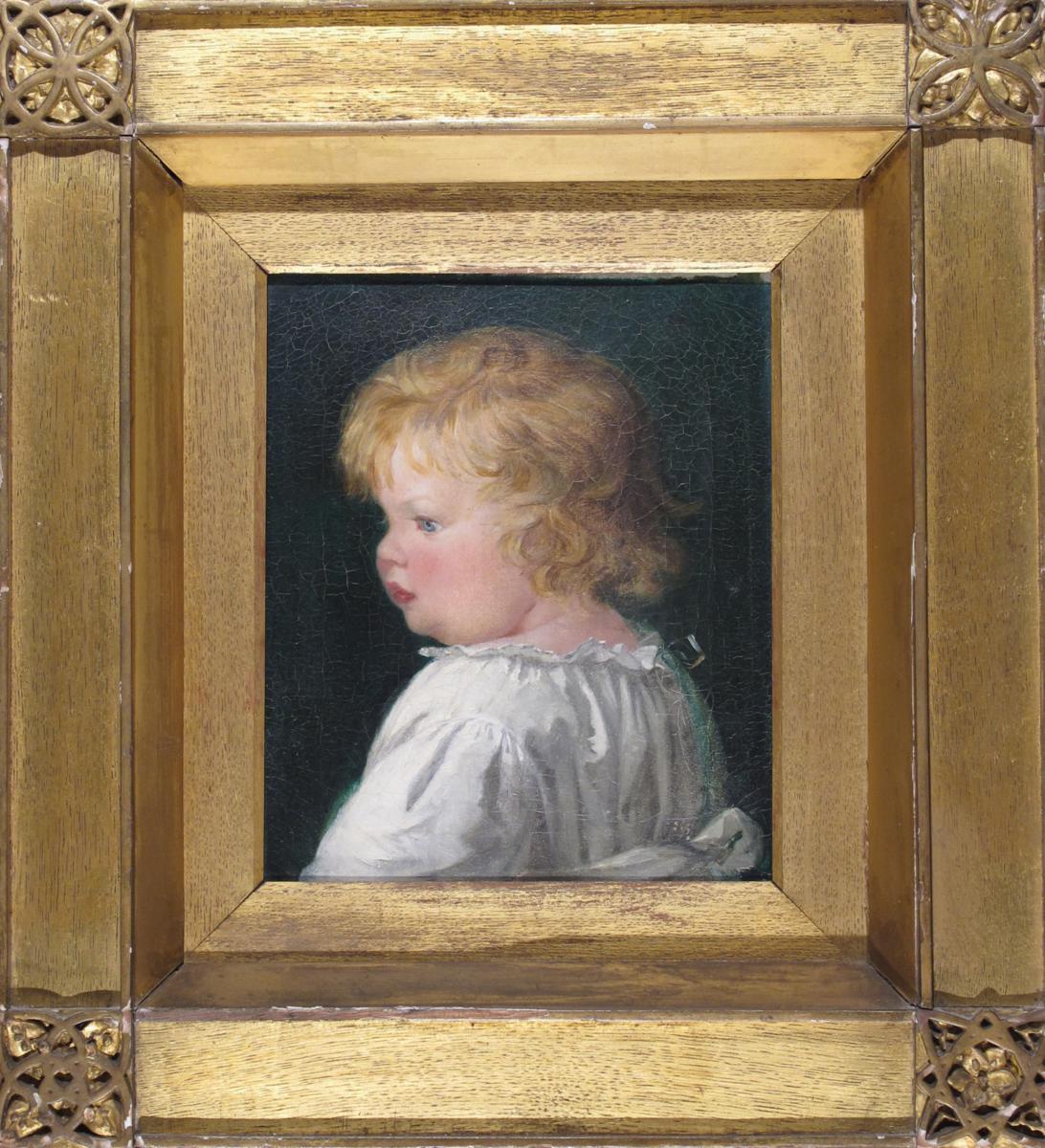 English School early 20th Century Portrait of a young girl Oil on canvas in a Rossetti style frame 25 x 22.5cm; 9¾ x 8¾in