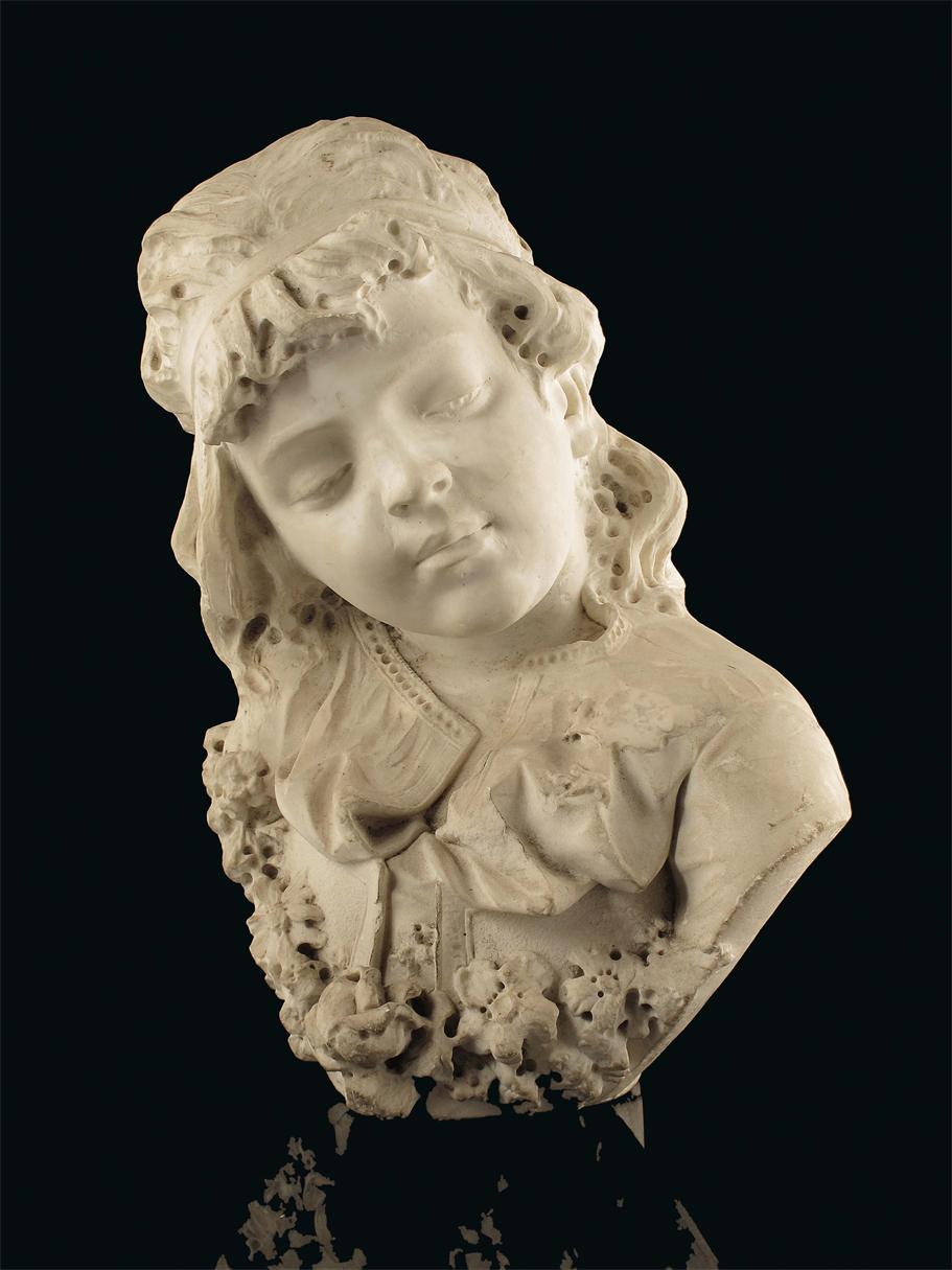 Antonio Frilli (Italian, 1892). Bust of a young girl, marble, signed on the verso 'A. Frilli', 14.5in (37cm) h.