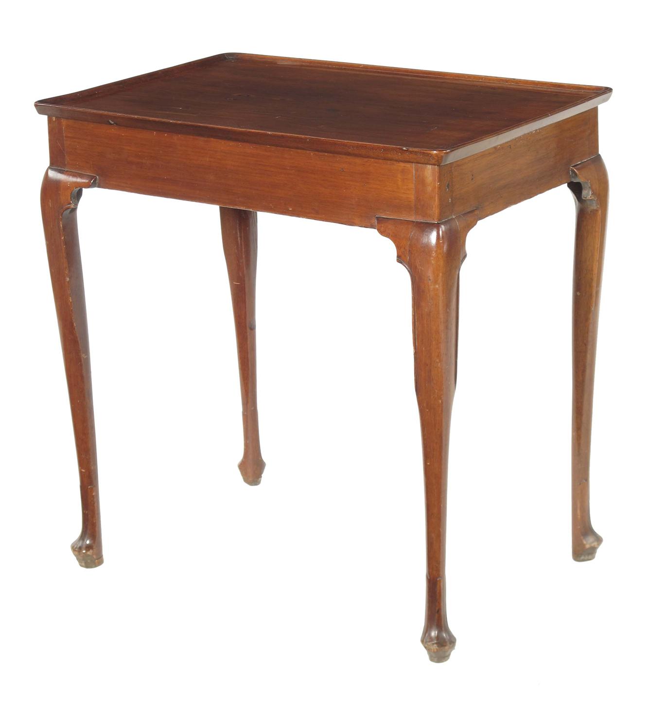 An Irish mahogany silver table, the dished rectangular top on slender cabriole legs to faceted pad feet, 28.5in (72.5cm) h, 28in (71cm) w, 18.75in (47.5cm) d.