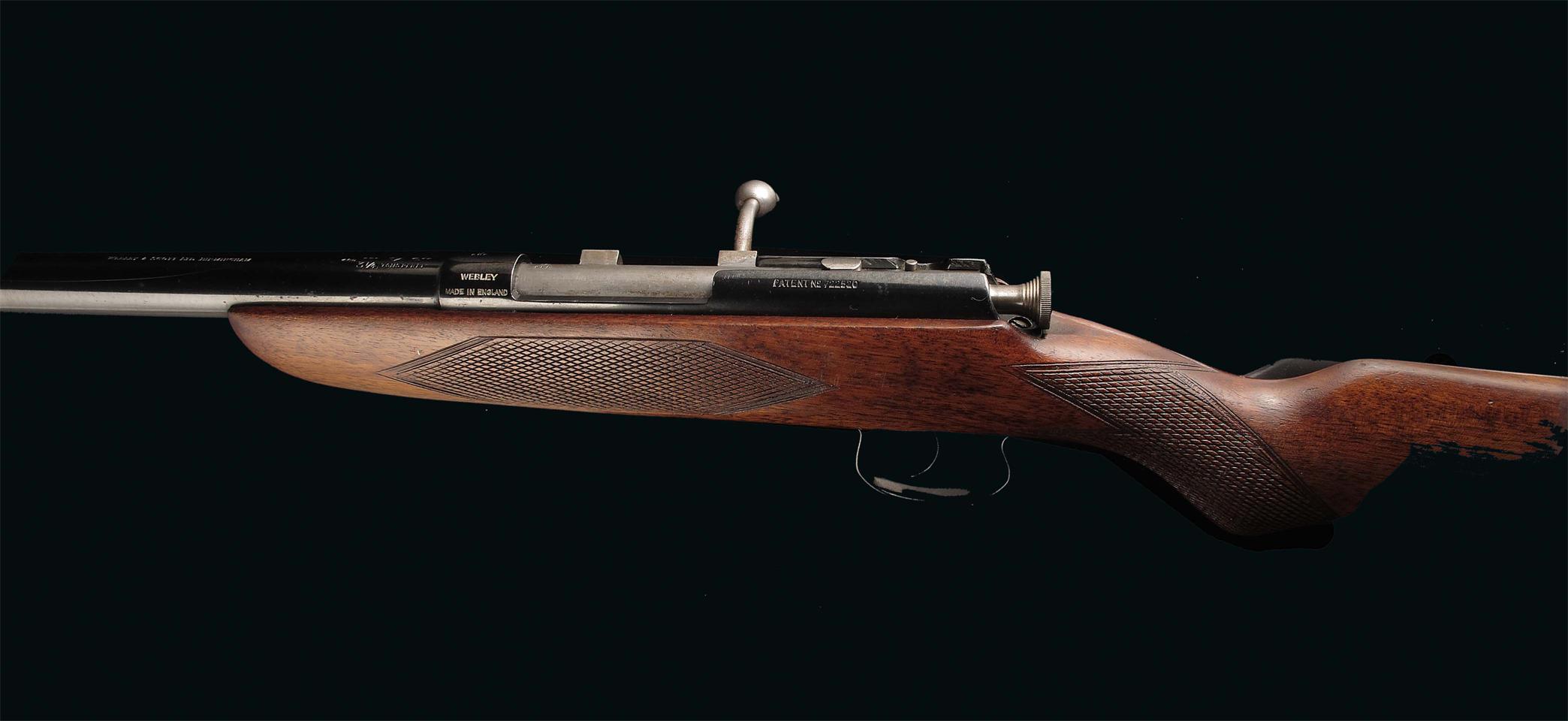 A Webley & Scott bolt action 410 single barrel shotgun, with a modern slip case.