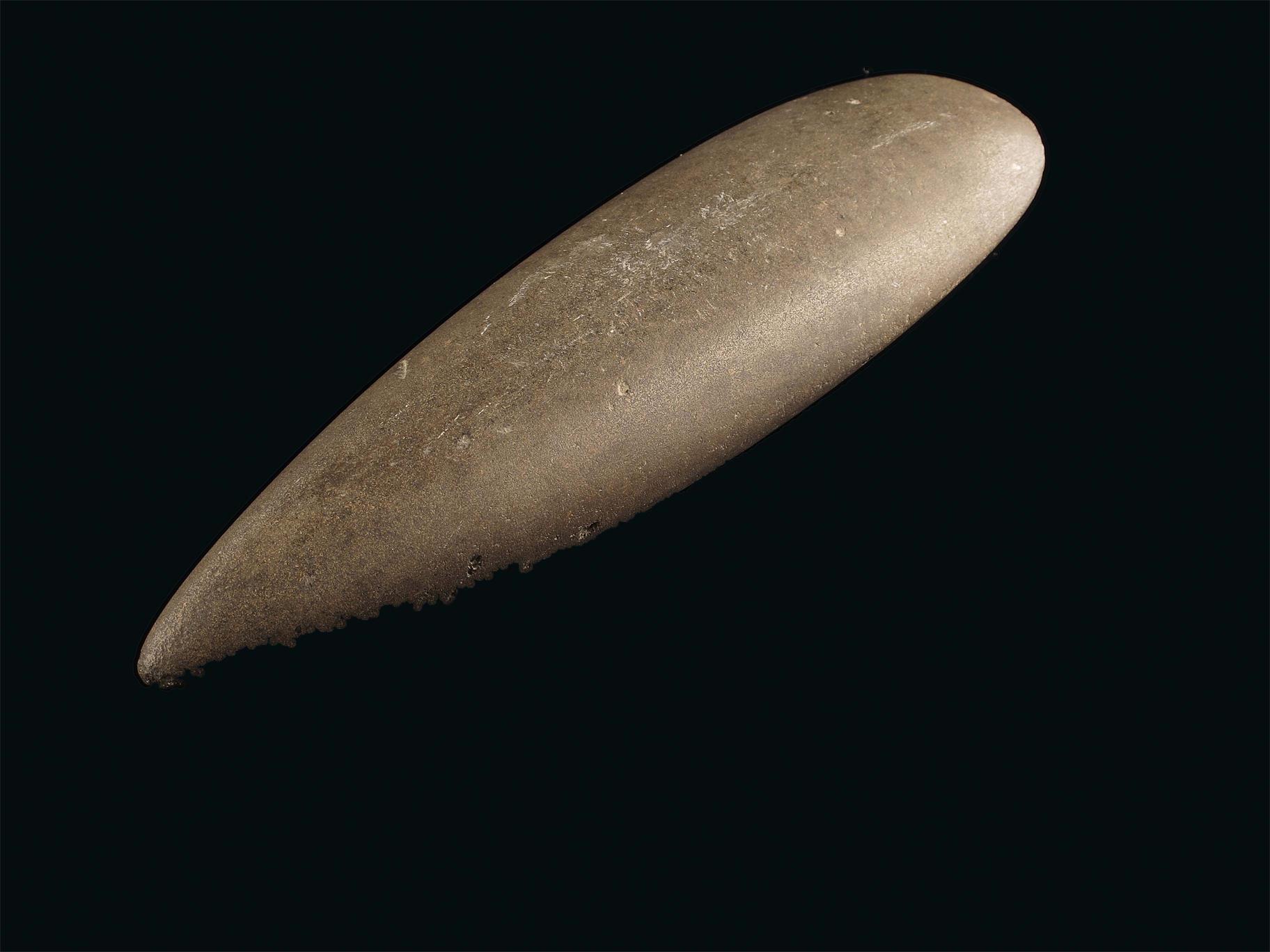 A Papa New Guinea large stone ceremonial axe head, of spatulate form, 18in (46cm) l.
