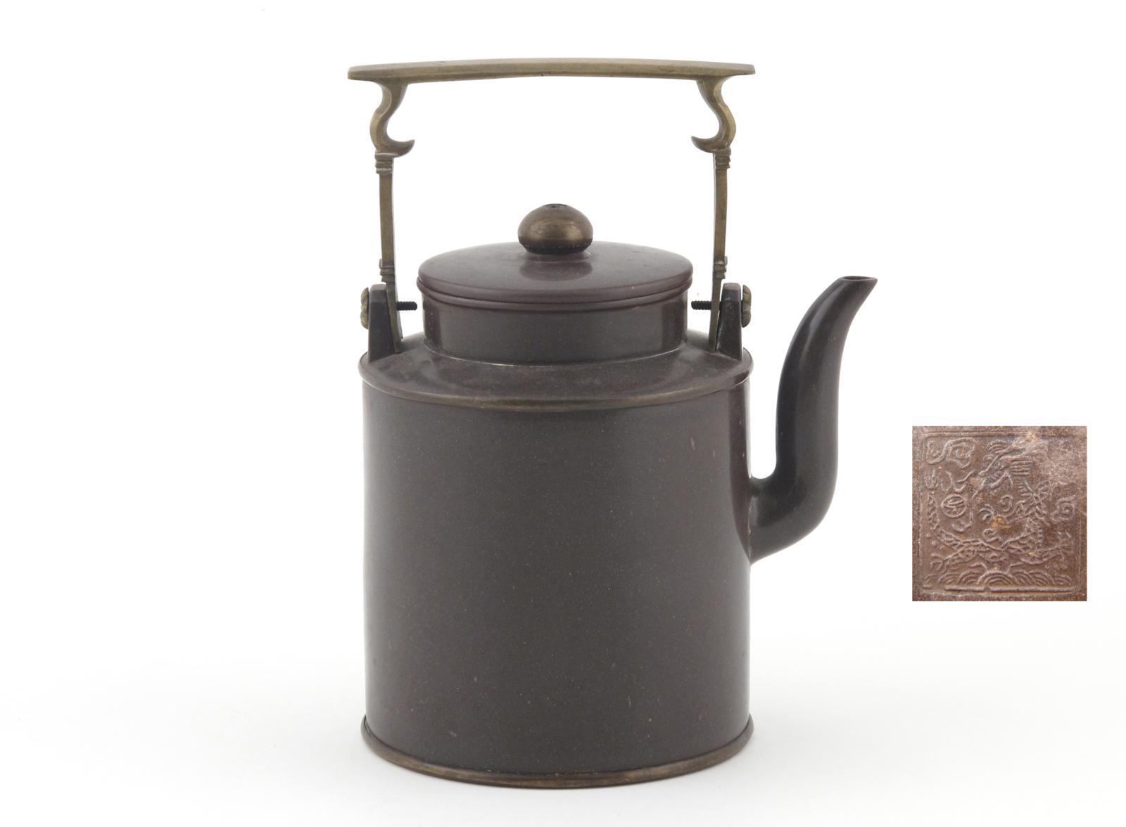 A drum-shaped Yixing teapot and cover 19th century, polished for the Thai market, the base with a pictorial seal mark, 21cm. (2)