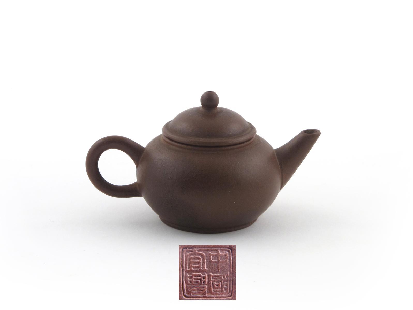A miniature Yixing teapot and cover Cultural Revolution 1966-78, by Wei Fen, the traditional globular body a rich earthy brown, impressed Zhong Guo Yixing square mark to the base, 8.5cm.
