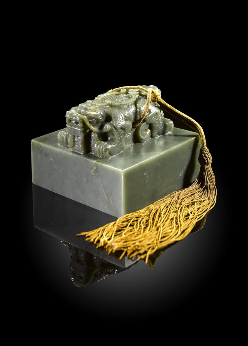 A Rare Large Chinese Imperial Celadon Jade Seal of Empress Xiaoyiren 19th Century